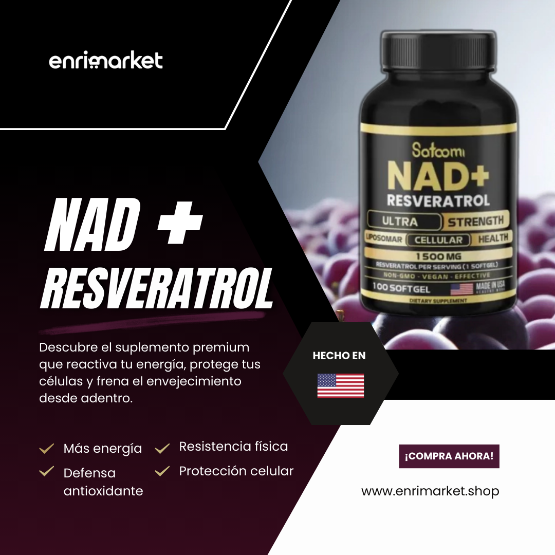 Optimiza tu rendimiento físico y mental cada día , con NAD+ liposomal y 1,500 mg de Resveratrol ultra puro para máxima absorción y resultados visibles.